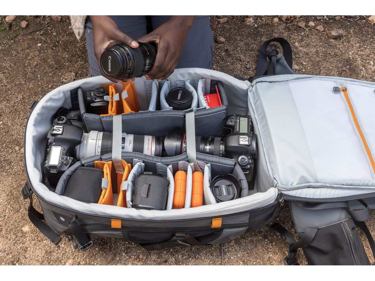 Der neue Pro Trekker 650 AW II ist auf Langlebigkeit ausgelegt und für die anspruchsvollsten Umwelt- und Wetterbedingungen konzipiert. Er ist die ideale Wahl für Profis, die den perfekten Begleiter für die nächste Wildlife-Dokumentation oder den mehrtägigen Außeneinsatz suchen.Das Trageerlebnis wird durch ein verstellbares Gurtsystem mit doppelter Polsterung verbessert, das aus der Photosport Pro Welt stammt, gepaart mit dem ActiLift, der dank der Möglichkeit, die Torsolänge zu verstellen, ein individuelles Trageerlebnis bietet, um die perfekte Passform für Ihren Körper zu finden. PASSEND FÜR 4-6 zusätzliche Objektive Kompakte digitale Ausrüstung wie die DJI Osmo oder Mavic Laptop bis zu 15 Zoll, Tablet-PC bis zu 10 Zoll sowie einem Wacom Tablet-PC (o.ä.) Großes Smartphone, professionelles Stativ und Zubehör 2-3 professionelle DSLR Kameras, eine mit einem bis zu 400 mm großen angesetzten Objektiv