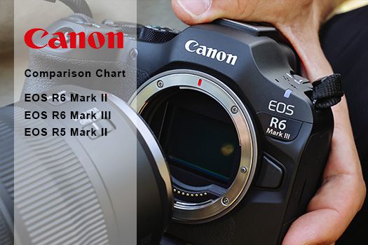 Die Vergleichstabelle stellt die Canon Vollformatmodelle EOS R6 II, R6 III und R5 II direkt gegenüber.