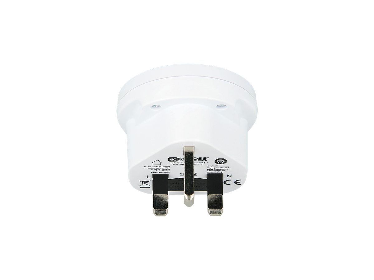 COUNTRY ADAPTER - World to UK - USB La norme de prise britannique est présente dans plus de 50 pays à travers le monde. Les voyageurs du monde entier y trouvent une connexion fiable et simple grâce à l'adaptateur de voyage international World to UK USB. Il est ainsi possible de brancher sur place tous les appareils à 2 et 3 pôles et de charger un appareil USB.charger en même temps un appareil USB. - Conçu en Suisse - Convient pour les appareils avec ou sans terre (2 & 3 pôles) et USB - Entrée de prise pour : Euro, Australie/Chine, UK, USA/Japon,Suisse, Italie, Brésil - Fiche de sortie : UK - Tension d'entrée : 100 V - 250 V - Charge max. Charge : 7 A - Puissance : par ex. à 100 V ? 700 W / 250 V ? 1750 W - Sortie USB : 5 V / 2.4 A- Pas de convertisseur de tension
