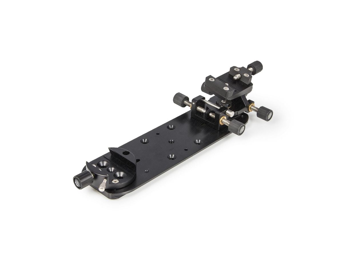 Baader Doppelmontage-Set, bestehend aus Leitrohrschellen-Halteplatte für Leitrohrschellen Gr. I und II (#1500330), V-Schwalbenschwanzklemme 70 mm (#2451530) und Stronghold Tangentialneiger #2450310. - Durchdachtes Doppelmontage-Set mit vielen Befestigungs- und Klemmmöglichkeiten. - Zum präzisen, parallelen Ausrichten von zwei OTA's mit "Vixen" (Celestron/SkyWatcher usw.) Schwalbenschwanzklemmen, sowie zum feintarieren beider Teleskope auf einer seitlich verschiebbaren 3" Schwalbenschwanzplatte. - Gesamtlänge der Platte: 300mm, Breite: 100mm - Anstelle der Schwalbenschwanz-Funktion kann diese 3" Platte auch mit vier Schrauben zentrisch an 10Micron (GM2000) und vielen Astro- Physics usw. Dec-Köpfen montiert werden, die den Standard-Lochkreis von 3,2" verwenden. In der Mitte der Platte befindet sich ein 3/8" Fotogewinde, damit die Platte auch auf einem stabilen Fotostativ montiert werden kann.