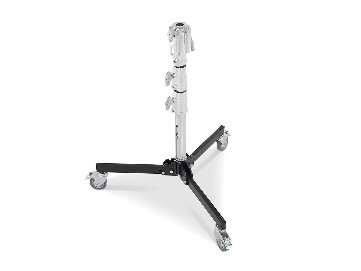 Le pied combo pliant à base roulante Avenger A5012, avec 3 sections et 2 montants, possède une colonne inférieure en acier et 2 montants en aluminium. Ce pied dispose d'une base roulante pliable et, une fois replié et les roues rabattues, ne mesure que 68 cm / 26,8 pouces de long. Avec une capacité de charge maximale de 25 kg / 55,1 lbs, ce pied à base roulante avec frein est parfait pour supporter des moniteurs et est très populaire auprès des personnes réalisant des prises de vue en direct (tethered shooting). La tête combo possède un récepteur de 28 mm / 1 1/8 pouce et une broche baby rétractable de 16 mm / 5/8 pouce. La base roulante basse pliable permet de glisser ce pied sous des objets peu élevés du sol. Se niche facilement aussi sous les C-stands ! La hauteur maximale de 120 cm / 47,2 pouces et la hauteur minimale de 78 cm / 30,7 pouces sont idéales pour travailler debout ou assis. Accessoires recommandés : G200-1, C1575B, E600, D800KIT, F831TH, E200, 163-10, 163-38, E390, F301, F300