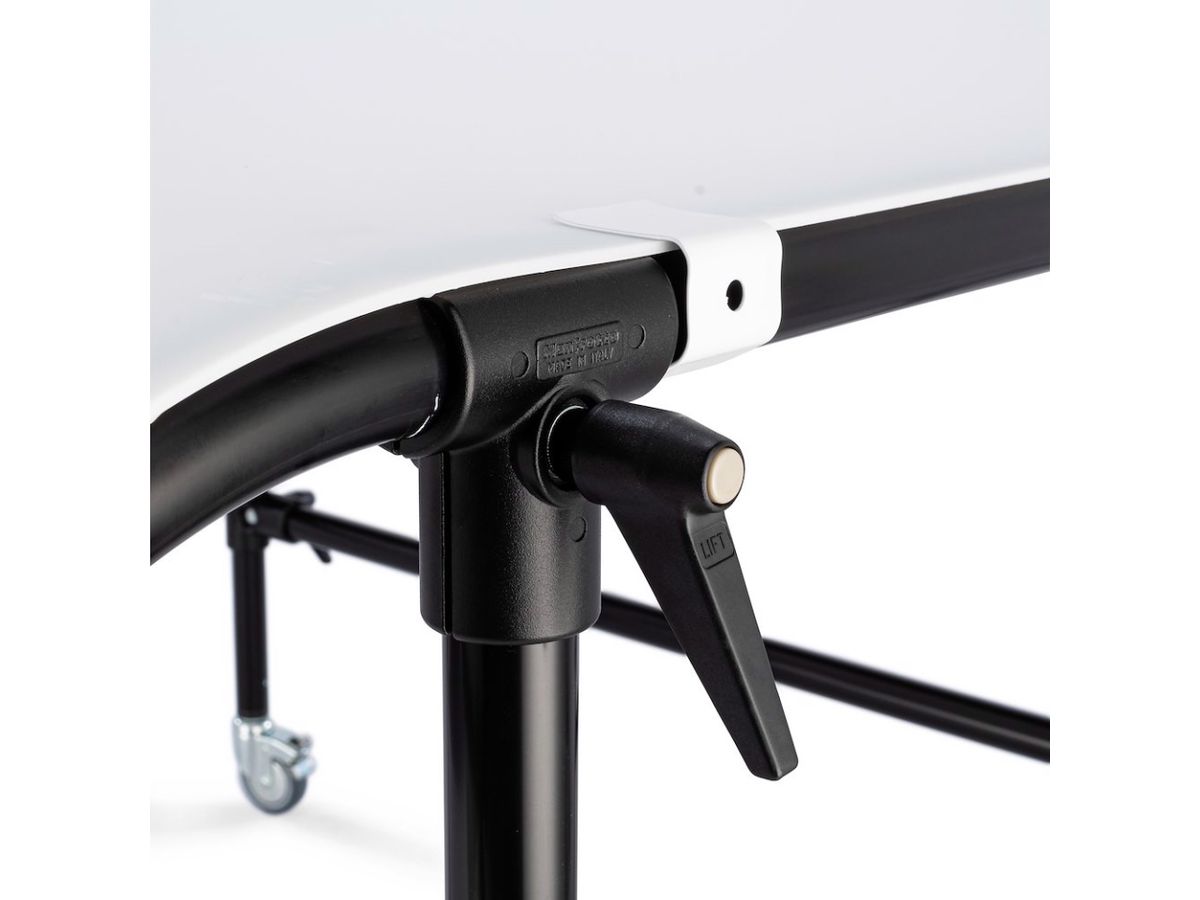 Pratique, polyvalente et fiable, cette table de prise de vue avec cadre noir est idéale pour les photographes qui travaillent en studio. Cet accessoire vous permet de réaliser des images professionnelles de produits seuls ou en groupe. Equipée d'un panneau en Plexiglass transparent, cette table de prise de vue s'éclaire aussi bien par l?avant que par l'arrière. Elle est simple à monter et à démonter et ne demande pas d?outil pour la réalisation de ces étapes. Son design compact vous permet de la ranger facilement à la fin de la journée. Le panneau en Plexiglass mesure 125 cm par 79 cm et s'installe rapidement grâce aux attaches en ruban adhésif. La table de prise de vue atteint une hauteur maximale de 193 cm lorsque le fond est placé en position verticale. Avec son fond à angle variable, vous pouvez régler avec précision la table de prise de vue. Vous pouvez également l'équiper de roues pour augmenter sa transportabilité. Cette table de prise de vous vous permet de réaliser des images d'objets avec les meilleures conditions de luminosité possibles. Les dimensions totales sont 200 x 122 cm. Avec cette table de prise de vue, vos photos de produits se démarquent. Conçue en Italie pour répondre aux normes de qualité les plus exigeantes, elle a une durée de vie élevée.